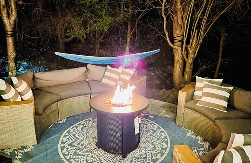 The Cozy Cottage offers a well appointed 2 bed 1 bath space comfortable for up to 5 guests. With the efficient interior footprint, the crown jewel of the property is the magical outdoor oasis. The back patio is equipped with a hot tub, dining area, propane fire pit, propane grill, and seating area to relax and enjoy nature in. Take your pick of 3 hammocks, either nestled amongst the trees or stream side. Wander up the custom stone pathway to a little peace garden overlooking the property. You can expect to see birds, deer, and other wildlife about while you enjoy the outdoors.