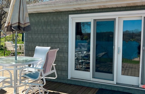 Cozy cottage with private lakefront view. Sleeps 6 adults comfortably - 2 bedrooms plus a hide-a-bed queen pull-out in the living room. Your stay comes with access to 2 kayaks, 2 paddle boards, a paddle boat, private dock, swim platform, and a HOT TUB. Plus, rent our pontoon boat upon request, just send us a message about pricing! Or, bring your ski boat for some serious fun or fishing boat to experience the best fishing around. With 100 ft of shoreline, there is plenty of room to spread out and play yard games or have a campfire in the fire pit. Relax on the extra-large deck overlooking the lake after you've whipped up a perfect meal on the grill.*Please note that this cozy cottagedoesnot have air conditioning, but is built into a hill that helps temper the heat* *Please see note at the bottom RE: Lake Algae*