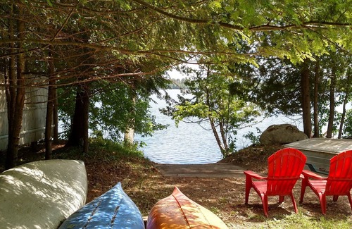This rental includes two kayaks, one canoe, a small row boat, and life preservers. Motor boats can be rented from across the lake (and they will deliver to the dock!). Just steps from the cottage is a nice dock with a large area at the end for swimming, sunning, and fishing and with further access to a swimming "float" 50' offshore along with a boat ramp. If you're looking for some great fishing and wildlife, you can take a kayak/canoe trip across the lake to Pickerel Pond!