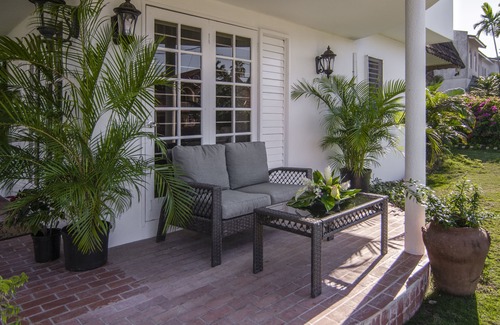 The Cottage is set in the beautiful enclave of Ironshore, Montego Bay, within proximity to the Elegant Corridor, Rose Hall and Jamaica’s coastline, Alamanda Cottage is just 10 minutes from the Sangster International Airport. This ornately appointed 2-storey self catering cottage at the gated “Serenity” complex is nestled within tropical garden, ideal for families and friends to relax and enjoy our stunning island. It features three bedrooms with ensuite bathrooms, a shared pool and located nearby are: Shopping at Whitter Village and Blue Diamond Shopping Centre, food and beach experiences available on the Jimmy Cliff Boulevard (Hip Strip).