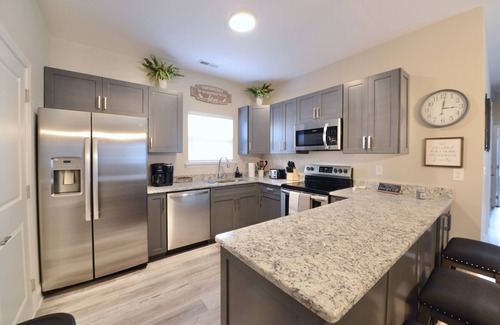 Enjoy access to our full kitchen with a refrigerator, stove, oven, microwave, toaster, blender, crackpot, dishwasher, and Keurig duo coffee maker as well as dishes and utensils. Washer and dryer included. Sleeps 8 comfortably. Smart TV's in each bedroom and living room (BYO password). Free Wi-Fi, cable, central A/C and heating, towels/linen, in-unit washer/dryer, hair dryers, iron and ironing board. Easy self check-in process.