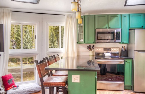 This unique, dome-shaped, pet-friendly home in the serene forest of Blue River is just 7 minutes from downtown Breckenridge. The cabin is right next to the bus route! Surrounded by tall alpine trees, boasting multiple skylights, as well as an updated kitchen and plenty of games and movies, Starlit Retreat feels as if you are in a cozy, modern treehouse in the summer and a snow globe in the winter.