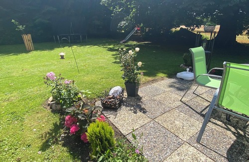 The apartment has its own large garden with a chestnut tree over 100 years old, a fenced pond, fruit trees, large trampoline, fireplace, barbecue area and 2 terraces, so you can have breakfast in the beautiful morning sun and in the evening enjoy the sun downer with a beer or glass of wine at the barbecue, unless you prefer to spend time on the old bench under the trees.