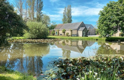 Semi-detached house. On the ground floor: Entrance hall (washing machine). Living room (smart TV, ADSL internet). Open-plan kitchen (induction hob, extractor hood, espresso machine, dishwasher, electric oven, microwave, fridge-freezer). WC. Upstairs: Landing with an office area. Bedroom 1 (160x200 cm bed). Bedroom 2 (2 twin 90x200 cm beds). Shower room with WC (sink, walk-in shower, heated towel rail, hairdryer). Outside: Shared unfenced garden. Shared courtyard with parking. Private covered terrace. Garden furniture. Deckchairs. Plancha. Pond on site. Covered shelter (bicycles and motorbikes). Electric heating included. Bed linen and towels provided (beds made upon arrival). For long stays, complete linen change every week. Optional cleaning service at an additional cost. Baby equipment on request. One pet allowed upon request to the owners. Located in Portbail-sur-Mer on the west coast of the Cotentin Peninsula, Domaine les Sources offers an authentic setting and tranquility. Boasting an 8,000 m² park and a pond, you can stroll through the shady gardens or relax by the water. Carole, the owner, who also manages guest rooms in the main house, recently restored the old stables and offers two additional four-person gîtes: Paul and Justine. She looks forward to welcoming you and showing you this haven of peace! A bonus: the GR223 hiking trail and the greenway are located right next to the estate for hiking enthusiasts, and you can enjoy a seafood platter (reservation required).