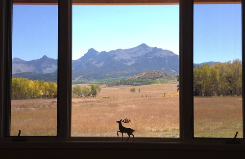 Enjoy a spectacular view of the San Juan Mountain Range (including Sneffles) from every south-facing room in our one bedroom/one bath modern ranch-style house. An office has been converted to add two single beds.