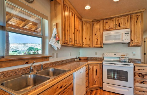 Discover your next Utah adventure at this 2-bedroom, 2.5-bathroom cabin! Nestled in the rural town of Henrieville, this vacation rental lets you return to nature with a secluded location near the red foothills of the Grand Staircase National Monument. Enjoy easy access to stunning parks nearby, including Bryce Canyon National Park, Kodachrome Basin State Park, and Zion National Park! After a day of hiking, relax on the covered porch and take in the beautiful views, or gather for a movie night.