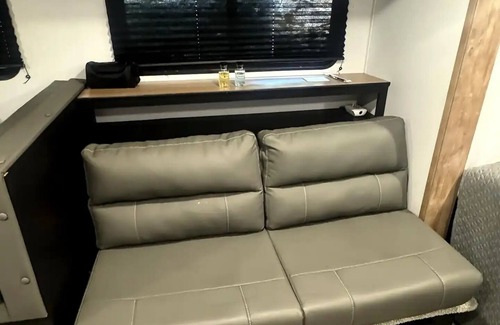 Enjoy the outdoors in our charming Hideout! Full bathroom, AC/heat, running water. Spacious studio suite with queen bed, convertible table and couch beds. Perfect for families or groups. Includes WiFi, refrigerator, microwave, and plenty of outlets. Ideal for longer stays with ample cabinet space. Affordable for stays of 1 month or more