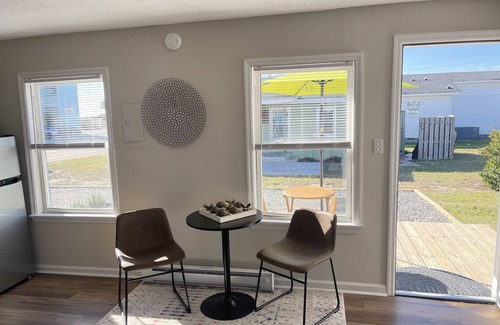 This charmingly renovated studio, ideally situated just steps away from beach access, presents a meticulously reimagined cottage featuring a well-appointed living space, dining area, bathroom, and a plush Queen size bed. Begin your day with a cup of coffee or unwind with a cocktail on the ocean-view deck during the enchanting golden hour. The patio is furnished with two Adirondack chairs, a table, and an umbrella, offering a serene setting to revel in the soothing sounds of crashing waves. Enhancing your experience, a fire pit awaits for cozy gatherings and a charcoal Weber BBQ stands ready for your convenience.