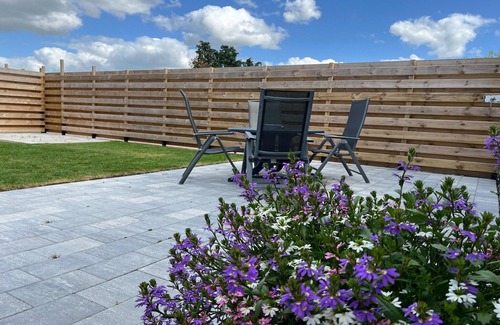 Layout: Ground floor: (Kitchen(electric kettle, cooker, microwave, fridge-freezer), Living/diningroom(TV, dining table, seating area), bedroom(double bed or 2 single beds), bedroom(double bed or 2 single beds), bathroom(shower, shower, washbasin, washbasin), toilet) garden, garden furniture