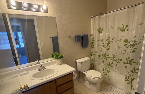 This 3 bedroom 2 bath home located in a quiet neighborhood is freshly renovated. It has a large fence, backyard .1 story, 2 bedrooms, has queen bed, and one bedroom has full bed, large living room area smart TV, 2 dining tables perfect for big group of people. Sleeps 6 plus the sofa. It has two full bathrooms, two car, garage and more parking space on the driveway. Kitchen has coffee maker, blender, plates, silverware, cooking, utensils, dishware, , toaster , refrigerator, and microwave. also has washer and dryer . Toilet paper towels, shampoo and conditioner and body soap, hair dryer are provided to make you stay more comfortable and enjoyable.