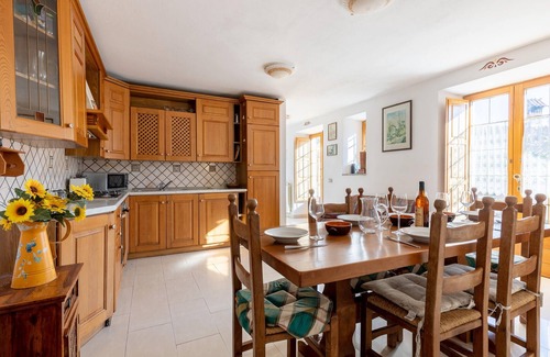 This vacation home is the ideal place for holidaymakers looking for seclusion and tranquillity and who want to enjoy the idyllic life in Italy. The kitchen of your vacation home invites you to cook together with a combination of traditional elements and modern functionality. Spend time with the family in the adjoining living room, whether playing cards or simply relaxing, while the mountainous landscapes can be seen through the windows. The full splendor of the surrounding natural areas can be enjoyed outside on the spacious terrace. You can also fire up the barbecue here or enjoy breakfast outside in the morning.
