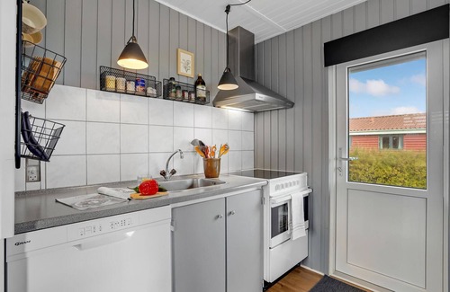 In the scenic area of Thy, this inviting vacation home welcomes you in a quiet location just two hundred meters from the water. The well-equipped house offers a bright, lovingly decorated interior that makes a personal and tasteful impression. Enjoy delicious meals in the cozy dining kitchen and spend relaxing reading hours or sociable board game evenings in the bright living room. On cool evenings you can enjoy the tranquility of the surroundings while warming yourself with a cup of tea in front of the fireplace.