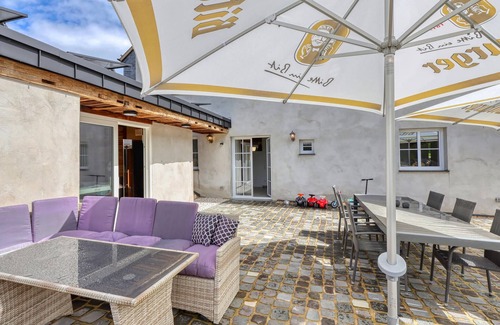 Immerse yourself in the charm of this magnificent holiday home, which offers you comfort and style in the heart of the Eifel countryside. In Irrhausen, in the middle of the Eifel countryside, this accommodation offers you comfort and style. Look forward to visible half-timbering, loving design and high-quality materials. The tastefully furnished interiors create a cosy atmosphere in which you will immediately feel at home. The wellness area with sauna, whirlpool and WC, directly accessible from the terrace, invites you to relax after a day full of adventures. This accommodation consists of several residential units, ideal for larger groups or families who also want to enjoy their privacy.