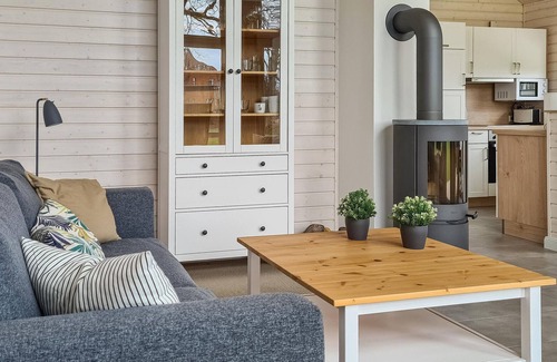 The modern wooden house impresses with its Scandinavian style and offers enough space for 4 adults and 2 children. Thanks to the ridge-high open ceiling, you can enjoy a pleasant feeling of space and light-flooded rooms. The furnishings in light colours contribute to the cosy atmosphere.