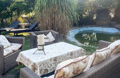 Spend sunny hours in the sheltered garden. Take a seat on the small wooden terrace or find a shady spot. Enjoy breakfast in the fresh air and then relax on the cushioned garden seating area by the natural pond or read a book surrounded by flowering plants.