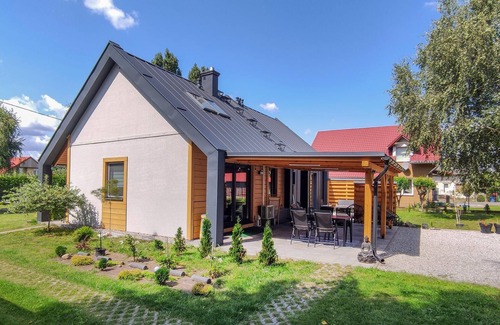 This lovely and modern vacation home welcomes you in Ilawa. It is ideal for a small family or two couples traveling together. The house is nicely and comfortably furnished and exudes a wonderful feel-good atmosphere.