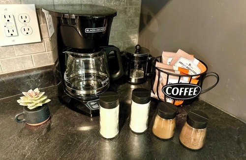 We took great care to provide things we have appreciated and things that were missing from our past travel experiences. Each bedroom has a flat screen TV with free Disney Plus w/Hulu as well as charging stations for your devices and extra pillows and blankets. Crib/pack-n-play & high chair are available upon request. The kitchen is well-stocked for most of your cooking and baking needs - from baking pans to a rice cooker and crock pot! And please help yourself to the complimentary snacks on the living room coffee table, as well as the complimentary coffee packets and coffee condiments in the kitchen.
