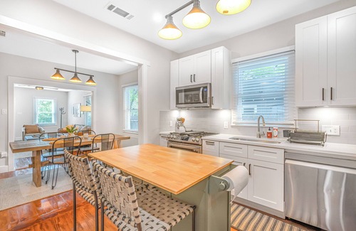Hyde Park Heritage Haven: a cozy 1920s bungalow in the heart of Austin's Hyde Park. This 2-bed, 2-bath spot is perfect for a laid-back stay, surrounded by great restaurants, cool cafes and top shops—all walkable. It's got a fully equipped kitchen, comfy living space with all the modern perks. Perfect spot to explore Austin. Located in Hyde park, our neighborhood offers coffee shops, bars, restaurants, parks and shops. We are just over a mile from the University of Texas and just over two miles from downtown Austin.