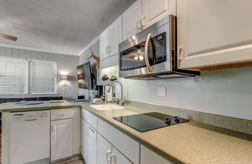 Make yourself at home in this adorable 1-bedroom North Myrtle Beach retreat. The cozy condo features a king bed in the bedroom and 2 futons in the living room for extra sleeping space. Enjoy the convenience of amenities like heating, AC, WiFi, and a hair dryer. The bathroom is equipped with a tile shower. You're sure to make fantastic memories with a stay at our place. You are tucked away from the world, but just steps away from pool then 100 steps from BEACH!!