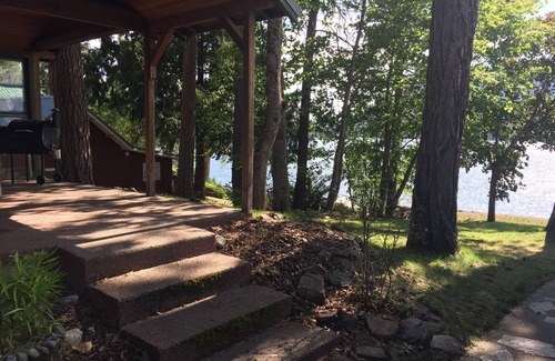 Two bedrooms have queen-size beds, one bedroom has two twin beds. Outside, a large, grassy yard gently slopes downward toward 95 feet of sandy shore of the lake and your private dock. This area is great for boating, swimming, kayaking and fishing for Salmon, Trout and Bass either in a boat or right off the dock and is so beautiful that you may prefer to sit on the deck (complete with patio furniture and a gas grill) and watch the wind ripple gently over the surface of the lake.