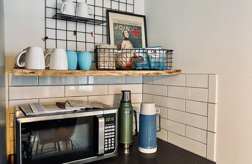 Warm, rustic-chic interiors with modern updates for a super comfy stay.