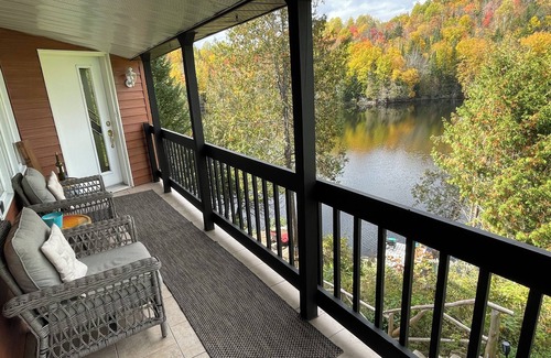 We are located 25 mins from Mt. Tremblant on a private lake with stunning birds eye views. The perfect base for your skiing or summer vacation!