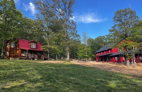This cute little cabin sits down in a wooded holler near Winslow, AR, is 10 minutes from Devils Den State Park, and just 25 minutes from Fayetteville. Enjoy the quiet, peaceful woods with the amenities of a "tiny home" style cabin. BBQ grill, firepit, and picnic table at each cabin. Perfect for a quiet getaway for 1, 2 or the whole family. Great for a Razorback sports events and more. The front porch rocker has a beautiful view. The pond is fun for fishing, riding the "peddle boat" or a kayak. The playground is waiting for the kiddos. There are 6 cabins available so share with your family and friends and have a great gathering for the weekend. The cabin has WIFI, is stocked with linens, dishes, a smart TV & DVD player. You can easily get a data signal on your phone.