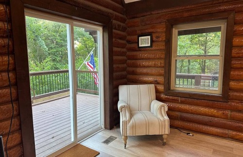 Escape to our cozy log cabin nestled in the tranquil woods, just 25 minutes from the vibrant heart of Broadway, Nashville. This charming retreat offers the perfect blend of rustic charm and modern amenities, making it the ideal getaway for families, couples, and friends.