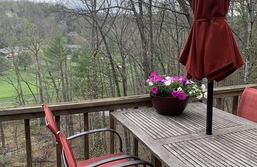 Creekside Cabin is a unique octagon home tucked into the side of the mountain at Bryce Resort in Basye, Virginia. The cabin offers all of the comforts of home for your enjoyment while visiting this beautiful part of the country. Floor to ceiling windows allow for your eyes to take in all of nature's beauty. Stoney Creek runs through our property and the peaceful water can be heard from the deck that surrounds the home. Views of Great North Mountain and the Bryce Resort are just outside.
