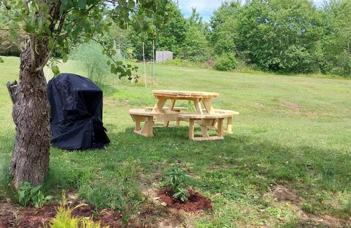 the creature comforts and supplies. Full kitchen. Grill your meal uder a Apple tree. Enjoy the soothing ambiance of the surrounding nature while staying connected with WiFi& TV Unwind after a day of exploring in the refreshing shower and make use of the convenient amenities provided. Cabin has everything you need for longer stays in Down East. Maine. this area is almost crime free. . Hosts have 23 years of successful income property ownership and are Retired Healthcare folks.enjoy everything county living offers and our cabin has,safe lighted grounds. 14 mile from Acadia National Park