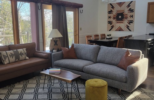 With year-round amenities, Villa 120 at Giants Ridge is sure to please! Take in the gorgeous views of Wynne lake from the newly updated deck. There are two cozy living areas for guests to hang out and relax. The lower level has a large smart TV and a poker table with a walk-out patio to grills and a picnic table. the lower level features a full bathroom, a sleeping area with a queen bed, and a living space. The main level has a kitchen with a dining table, 2 bedrooms, a full bath, and a living space featuring a gas fireplace. The master bedroom has a television and king size bed and the guest bedroom has a queen size bed. The loft has a full bathroom and three twin beds. Every room has been newly updated with unique touches that will make your stay restful and luxurious.