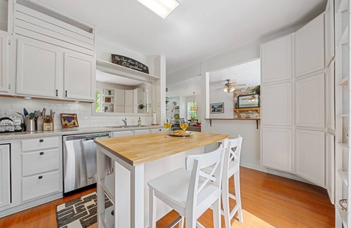 Indulge in culinary delights as you cook up a storm in our fully-equipped kitchen, complete with all the essentials for crafting delicious meals. The kitchen opens onto a private deck boasting serene views of the tranquil pond, where you can savor al fresco dining experiences amidst the beauty of nature.