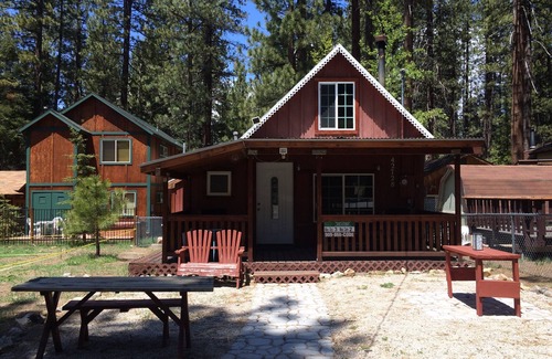 Welcome to Baby Bear Bungalow! This modern, yet rustic 1940s cabin in Big Bear Lake will warm your heart and soul. Being less than a mile from Southern California's best ski and snowboard resorts and just minutes from Big Bear Lake makes this the perfect retreat for your mountain getaway during any season. The shuttle for Snow Summit and Bear Mountain, trailheads to the National Forest, as well as Moonridge eating establishments, Bear Mountain Golf Course, and the new site for the Alpine Zoo are all within walking distance. There are two bedrooms each with Queen-sized beds (one is a private loft up a spiral staircase), a fully equipped kitchen, and an upgraded bathroom with a whirlpool jet tub. There is a covered front porch with rocking chairs and a fully fenced backyard perfect for well-behaved dogs. Please bring your own bed and blankets for your doggies!