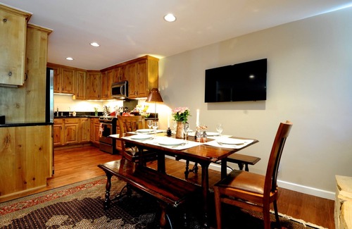 Let the kids make snowmen while you make dinner. Then it's only a 15 minute walk to Main Street -- or just 100 ft. to the free bus line. (A smartphone app tracks bus arrival times.) Too tired to move? There's a heated pool, and a large spa, just 200 yards from your door.