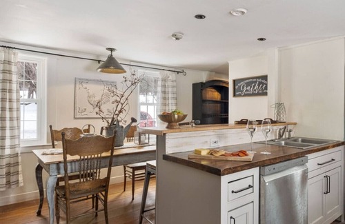A rustic modern farmhouse apartment on a real working farm in Gilmanton. Watch mini cows graze from your porch, hike trails with views of the Belknaps, or sign up for farm yoga and a horseback ride. Inside, you'll have plush leather seating to sink into, a wood stove, and a full kitchen. 20 minutes gets you to Gunstock, Lake Winnipesaukee, and live music.