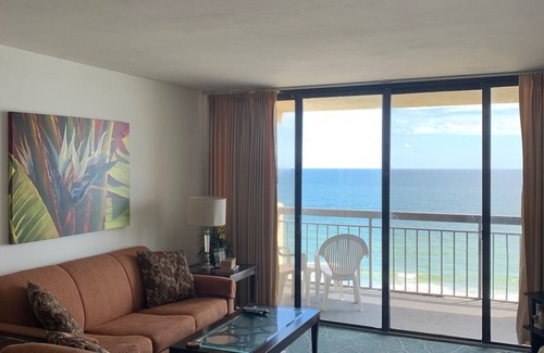 Light and bright larger 1600+ sq. ft. oceanfront end-unit condo on high floor for great views, with 3 balconies. Three bedrooms, two with direct balcony access. Kitchen accesses 3rd balcony. This renovated beachfront condo features direct beach access, 74 golf courses (and 50+ mini golfs!) within 20 miles, including 8 within North Myrtle itself. After a day in the sun and maybe a visit to Pawley's Island or Brookgreen gardens, come back home to enjoy a swim in the community pool and barbecue in the community grilling and picnic area. Mostly owner-occupied building is a quiet respite and infrequently busy. Good value for money.