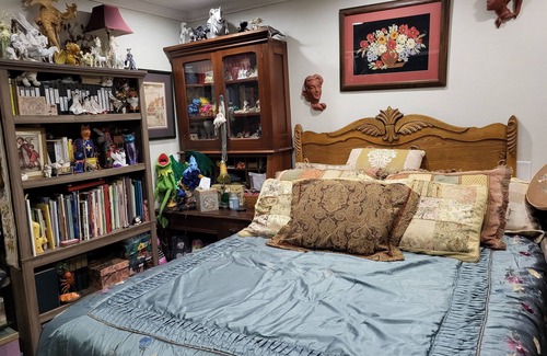 If your looking for a quiet, relaxing getaway or a base camp. This 2 bedroom older farmhouse has lots of charm and places to chill on the deck with a cup of coffee and a good book while enjoying a tranquil almost zen like garden setting and koi pond. Large upstairs bedroom has a kingsize bed, fireplace and half bath with washer and dryer. The living room is great for entertaining and has a round game table perfect for playing our well-stocked board games. Downstairs bedroom has a queen bed with zero gravity remote. My home if filled with momentos, crafts and books so if you want a sterile hotel like environment this won't be the house for you. There are also air beds available if needed.