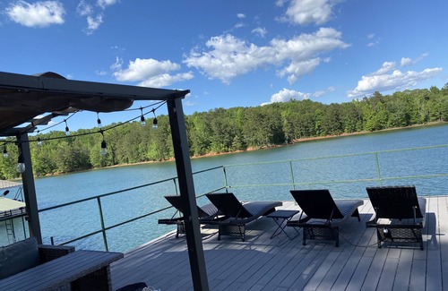 Quiet family & dog friendly home on Lake Hartwell with a large deck and two level boat dock. Very deep water (23 feet at dock when lake is full) means not worrying about summertime water drops and no touching your feet on the bottom when swimming and no muddy water! Two jet ski ports for keeping your water craft out of water and secure during your stay. Bring your boat too, there is plenty of room to tie up to the dock! There is a small boat ramp that is located in same cove and very easy to get to (Port Bass boat ramp). The spacious upper dock is furnished with cushioned furniture and sunshade. Kayaks are also available to be used to explore our large and quiet cove. The large 20'x30' deck overlooks the lake while keeping dogs and small children secure with gates and fencing. Multiple tables with sunshades, grill, and mosquito lamps will keep you comfortable while grilling out lunch or dinner. Full size washer and dryer along with two full size refrigerators. In addition the house is equipped with central air and smart TV. Master bedroom has a queen size bed, 2nd bedroom has two sets of twin bunk beds, and living room has a queen size pull out sofa bed. Concrete parking area is 35'x50' so there is room for your vehicle and trailer. Fast fiber WiFi included. There are multiple State and Federal parks in the area with hiking and biking trails. We are only 30 minutes to Clemson University and one hour to University of Georgia.