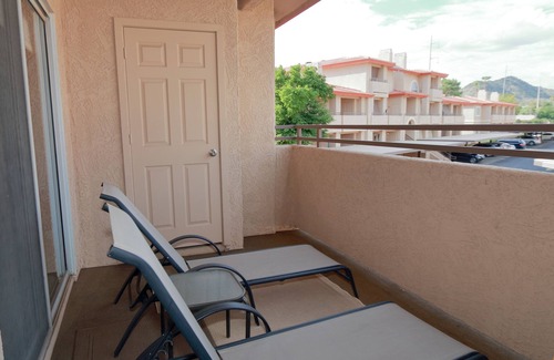 This charming second floor 2-bedroom condo is perfect for small families, business executives, or anyone looking to enjoy time in Phoenix. This condo sleeps up to 5 people and includes a balcony providing extra space to enjoy the Phoenix sunshine.
