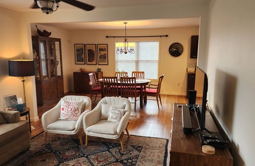 Respite House( "ravach", an interval of rest or relief, revive, to have ample room, to breath easily. "So he was refreshed and was well". 1 Samuel 16:23) is a cute, homey cottage-style home. This cozy three bedroom house is located in the center of town across from the Laurel High School and only 1/2 block to Thompson Park. A perfect location if you are in town for school events, sporting events, family events or just need a place of rest to escape. Full kitchen and large dining room space with all the amenities to cook meals. Dining room table will seat 6-8. Coffee machine is pod or bean with grinder to start your day. Super kid-friendly from dishes to toys, pack-n-play and high chair. Washer and dryer are available for use. Everything to make your stay a home- away-from-home! Every bedroom has mirror and vanity space to accommodate only having one bathroom. One queen bedroom has a desk/workspace. The full size room has toys and a small desk/workspace. Smart TV with sound bar.