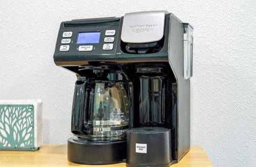 Fully Equipped Kitchen: Cook up your favorite meals in the open kitchen, complete with stylish brand-new cabinets, modern appliances, ample food storage, and a well-stocked coffee station with honey sticks and a variety of teas to enhance your mornings.