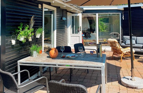 This charming holiday home, nestled in a peaceful area at Ellinge Lyng, offers a perfect retreat for a family or small group. With a spacious open kitchen, dining area, and cozy living room, it’s designed for relaxation and togetherness. The living room features a double bed, a wood-burning stove for cozy nights, and modern entertainment options such as Chromecast and Bluetooth speakers. The house has one comfortable bedroom with a double bed, plus an annex (added in 2019) that provides an additional double bed. Enjoy the great outdoors with a natural plot of 1468 m², where children can explore trails and play around the fire pit. The house also features a terrace, perfect for outdoor meals under the sun, and garden furniture to relax in the serene surroundings. The kitchen is fully equipped with an electric stove, fridge-freezer, and dishwasher, while the bathroom includes a washing machine, WC, sink, and shower cubicle for your convenience. With electric heating and an air/air heat pump, this holiday home ensures comfort year-round. Located just a short walk from a restaurant, mini golf, an ice cream parlor, and a burger bar, the property offers a convenient spot to explore nearby attractions and local favorites.A refundable deposit might be charged closer to your check-in date. Thesecuritydepositensuresasmoothstayandcoversany additionalservicesorconsumptioncharges.Thisdepositcoversutilitiesconsumedduringyourstay andanyadditionalservicesthatmaybetaken.Thefinalamountwillbeadjustedbasedonactualmeter readings,actualusageofextraservices,andanyremaining balancewillberefundedwithin21daysaftercheckout.Thisdepositsimplyactsasaprepaymentforchargesthat youwouldanywayspayfor,ensuringaseamlessstayand check-outexperience.
