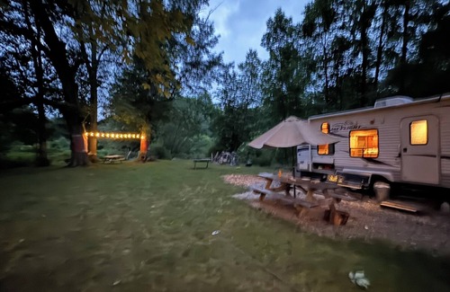 Cozy Riverside 2-bedroom RV in Charming Burton Ohio is located in Burton. Cozy Riverside 2-bedroom RV in Charming Burton Ohio provides accommodation, featuring Air Conditioner, Fireplace/Heating, Barbecue/Outdoor Cooking, among other amenities. This House features Air Conditioner, Fireplace/Heating, Barbecue/Outdoor Cooking, to make your stay a comfortable one.