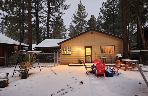 Enjoy your stay in Big Bear at the Tinker bell Chalet! located in the Peter Pan neighborhood in the Northshore area, a cozy, rustic cabin retreat with a large fenced backyard to enjoy the outdoors, star gaze and breathe fresh air with all that Big Bear has to offer: 5 to 10 minutes to ski slopes, 1 minute to national forest, with awesome hiking/biking/jeep trails, 2 minutes from lake, 5 minutes shopping, 10 minutes from Big Bear Village.