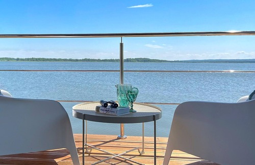 The child-friendly accommodation is particularly suitable for those looking for an exceptional living experience. In an excellent location, directly on the lake and within walking distance of the sea and an aqua park, this houseboat invites you to enjoy a relaxing family vacation with unforgettable bathing fun. The houseboat with its family atmosphere and glass walls is modernly designed, well equipped and offers a great view from the living room, where you can enjoy a delicious breakfast together with a view of the glittering lake. Linger on the terrace during the day and enjoy the proximity of the water. There are plenty of activities on the shared grounds to keep your little ones entertained for hours.