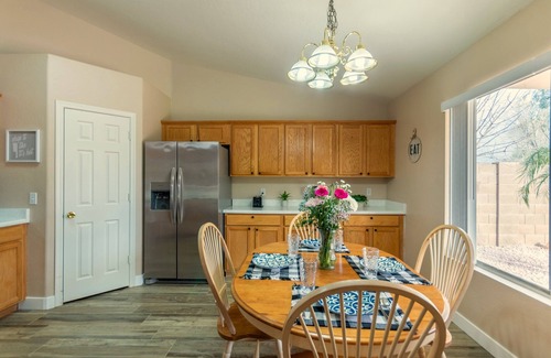 This home is live-in ready with 4 comfy beds and ample amounts of snuggly blankets & fluffy pillows. This home is single-story with no stairs. The backyard is spacious with a long shaded patio and grass. Perfect for pet owners and families with small children. There is high speed internet & the kitchen comes fully equipped for making your favorite meals. Your stay here will have a homey feel to it. We are also very close to many local airports, hospitals, and prime shopping locations. Book your stay today!