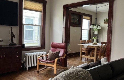 Located in Kearny, enjoy what this 3-bedroom apartment has to offer. With a king bed, queen bed, and twin bed, guests can relax in the serene bedroom setup. It's easy to see why you'll be able to unwind at our place. Nestled on the edge of Hudson County, our restored, century-old home has been reimagined as a Neo-Renaissance Craftsman retreat. Each room offers a comfortable home-away-from-home experience. Ideally located, guests have easy access to major transportation hubs and tunnels, just 25 minutes from Manhattan. A 3-minute walk to the bus stop, which connects to the Harrison PATH Station Newark Pen Station, makes this the perfect hub for work and leisure. We provide personalized service to meet every need.
