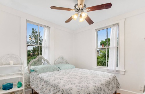 This historic home was built in 1902 and exudes Savannah charm, with hardwood floors, oversized bedrooms, and tall ceilings. A washer/dryer, central air-conditioning, and free WiFi add a layer of modern convenience. The full kitchen provides everything you need to create tasty meals; the whole group can dine at the table. Unwind in the evening with a little TV, pop in a DVD from the collection, grab a board game, or start a puzzle. Starland's Yellow Door Retreat is the perfect home base for family getaways, monthly business travelers, or those looking for temporary housing when relocating - book today to make your Savannah dreams come true!