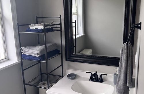 Cozy studio w/Private Entrance (attached to main house). Includes microwave, mini refrigerator, Keurig coffee maker, water filter pitcher, tea kettle, Smart TV, toaster oven, dual countertop flat burner, desk and chairs.