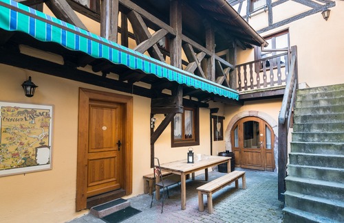 Pretty cozy studio, located on the first floor of an Alsatian winegrower's house with a king size bed. Fully equipped kitchen, free wi-fi, TV, Senseo coffee machine and filter, private shower and toilet. A washing machine and dryer are available in a common area. Accepted animals. Possibility to eat on the patio, common table.